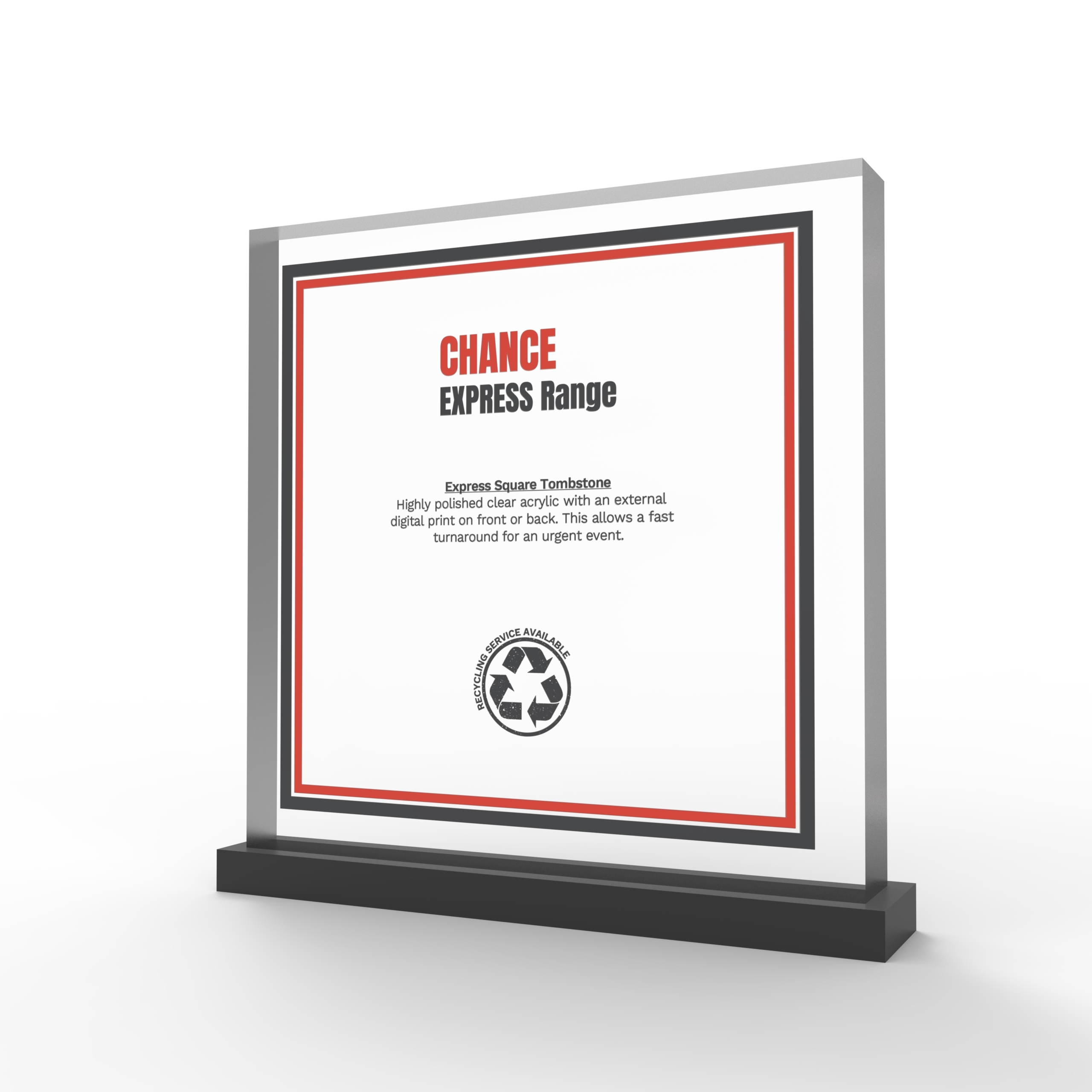 Respectez vos délais sans compromettre la qualité avec la gamme Express de Chance, comprenant des trophées financiers, des tombstones et des trophées de reconnaissance.