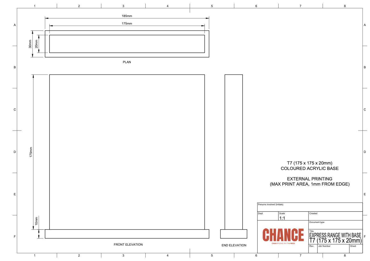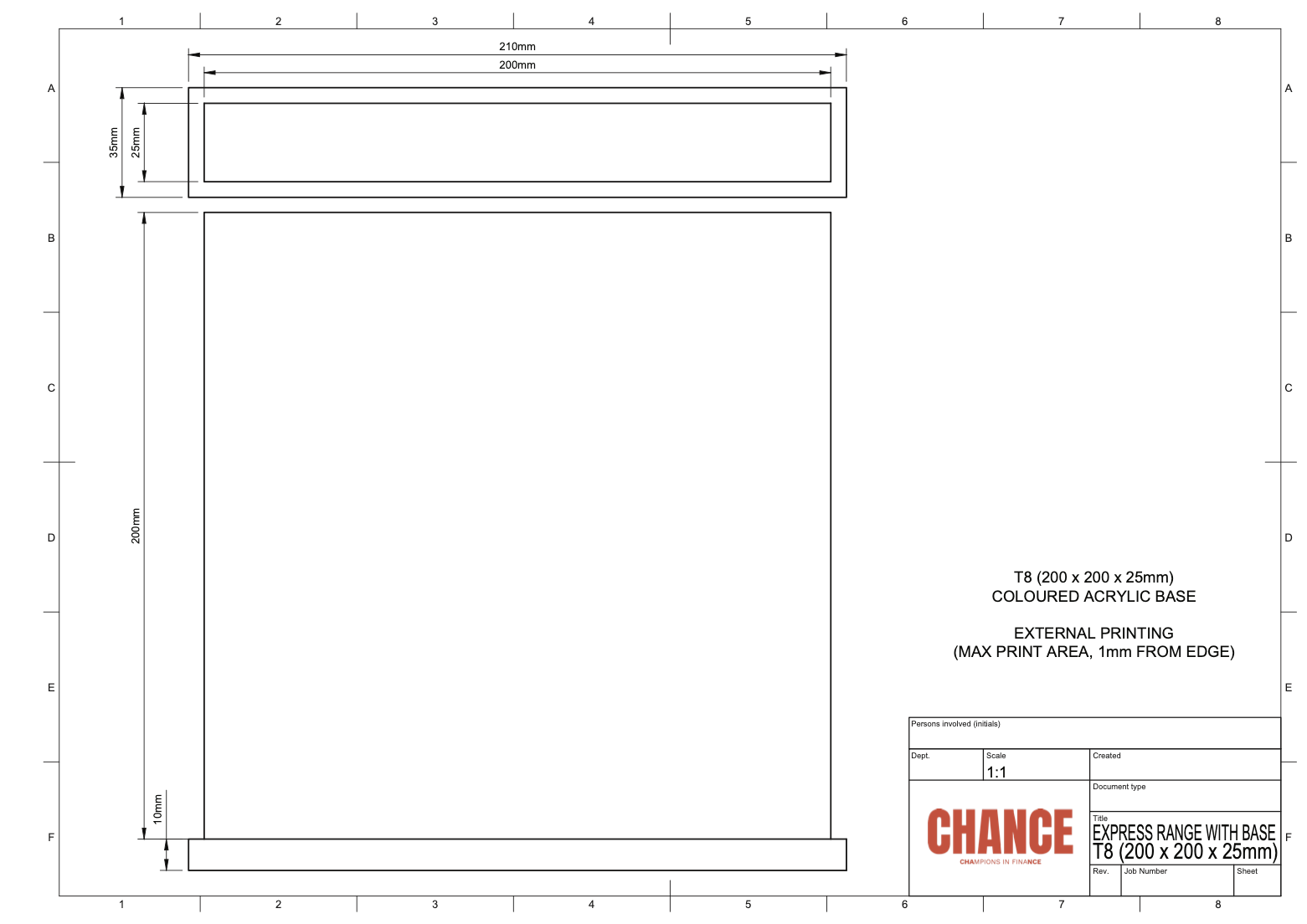 T6 – 150x150x20mm, T7 – 175x175x20mm, T8 – 200x200x25mm